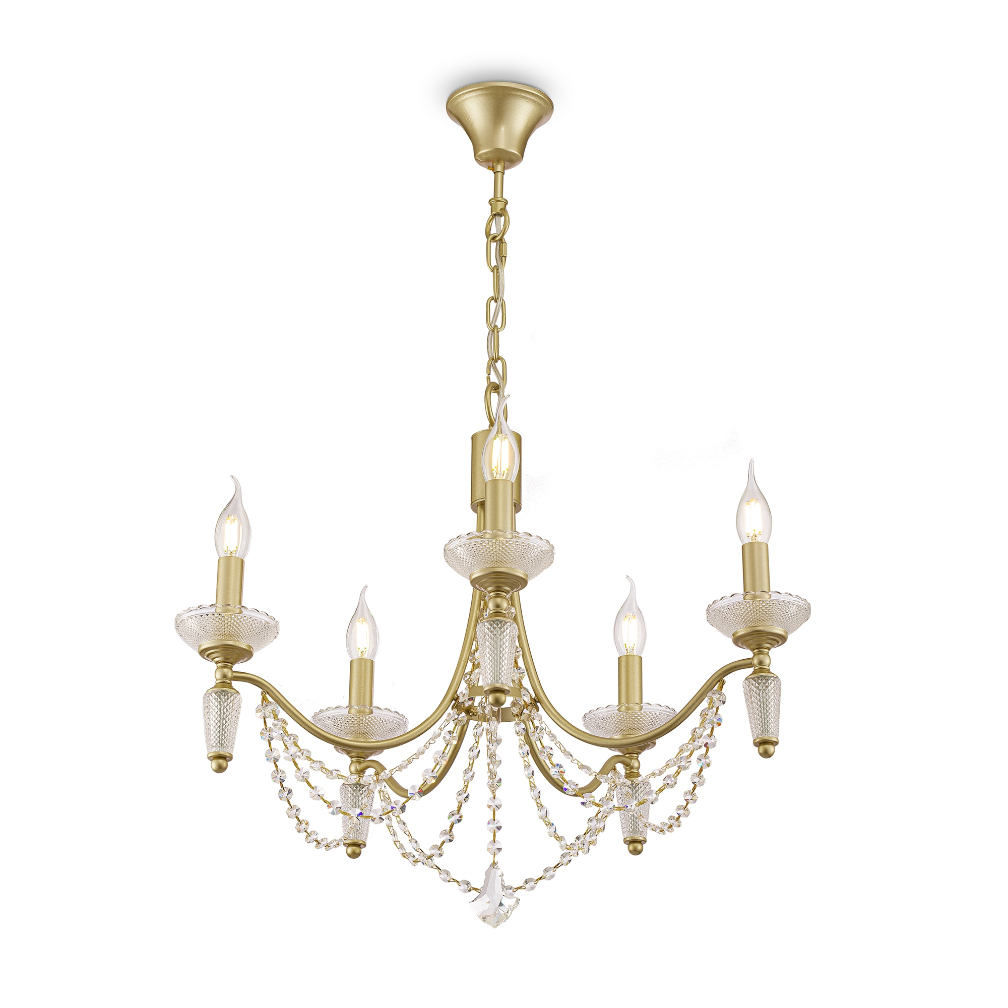 Люстра Classic Zoe, 5xE14 Золото, Прозрачный (Freya, FR2009PL-05G)