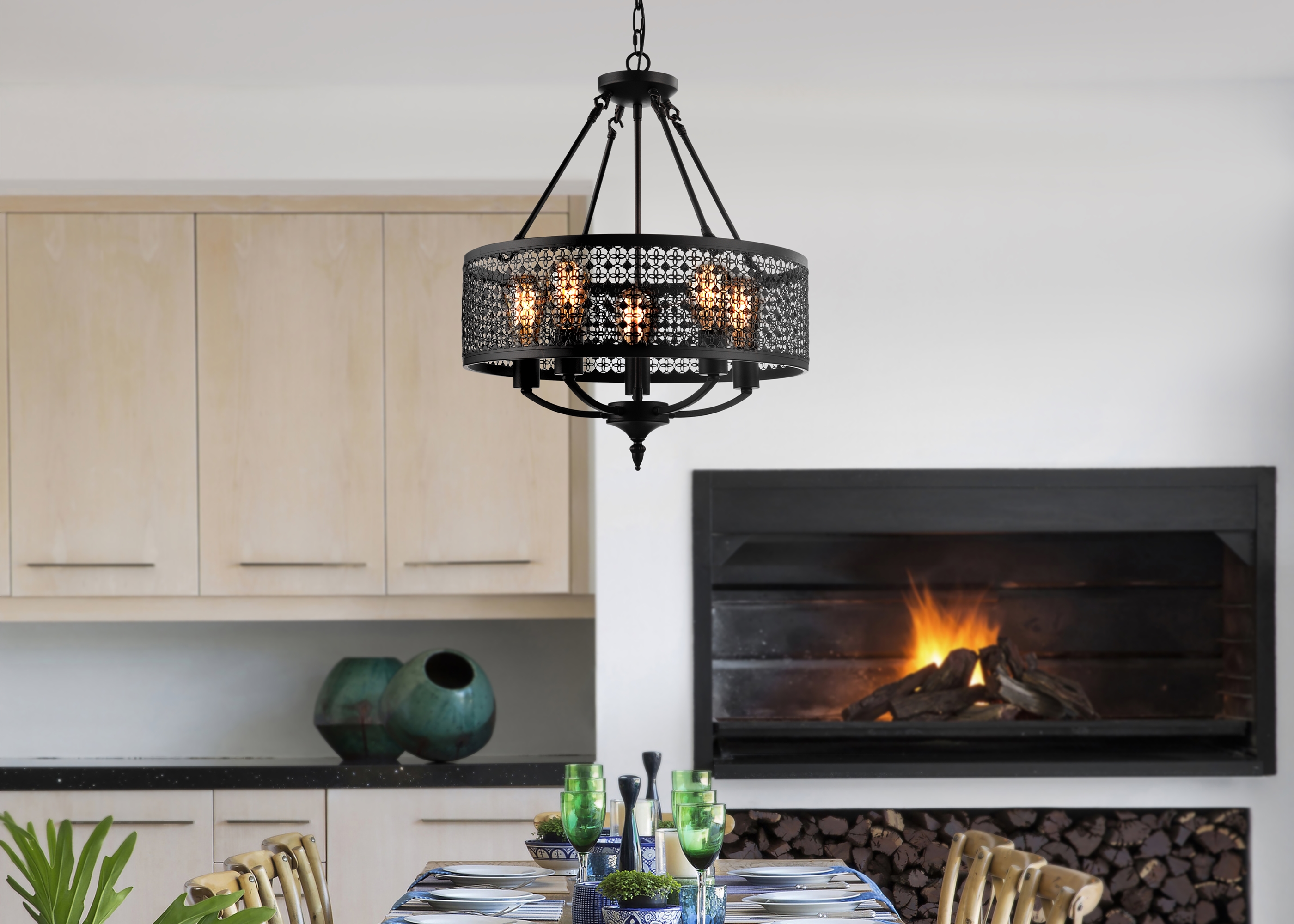 В дизайне светильников сочетаются строгие и четкие линии с затейливой резьбой абажуров. Резные абажуры люстр, выполненные из металла цвета "античный коричневый", придают светильникам строгий, но в тоже время торжественный вид.